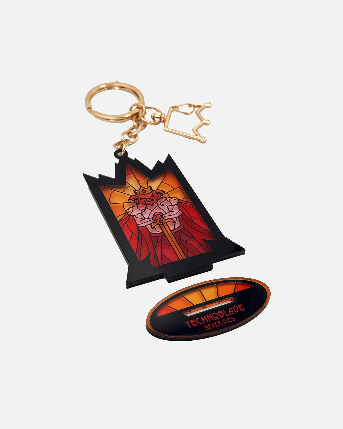 A dual-use keychain and standee featuring a stained glass-style Technoblade design by Winterstar Art.